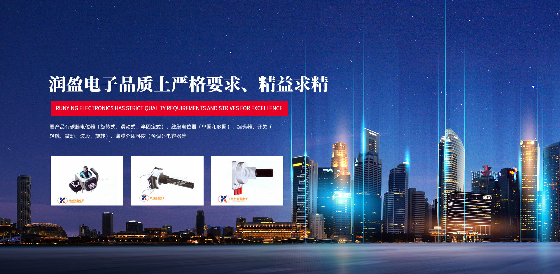 常州潤盈電子有限公司成立以來,從事編碼器、電位器、電子開關(guān)的研發(fā)和制造。公司總部設(shè)立在江蘇省常州市禮嘉鎮(zhèn)。常州潤盈電子有限公司擁有完整、科學(xué)的質(zhì)量管理體系,采用先進(jìn)的加工設(shè)備、精密的檢測儀器、高能的組裝生產(chǎn)線,在品質(zhì)上嚴(yán)格要求、精益求精,在團(tuán)隊管理上以人為本、精細(xì)管理,以此來確保本公司為客戶提供的優(yōu)良產(chǎn)品和服務(wù)。隨著公司業(yè)務(wù)的國際化,公司產(chǎn)品全部達(dá)到“ROHS”指令要求。公司現(xiàn)在主要產(chǎn)品有碳膜電位器(旋轉(zhuǎn)式、滑動式、半固定式)、線繞電位器(單圈和多圈)、編碼器、開關(guān)(輕觸、微動、波段、旋轉(zhuǎn))、薄膜介質(zhì)可變(預(yù)調(diào))電容器等。我們始終堅持“效率成就品牌,誠心鑄就未來”的宗旨。不斷創(chuàng)新是企業(yè)得以生存的動力,潤盈電子期待與您的合作!